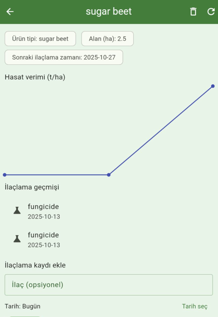 Ürünlerinizi ve hayvanlarınızı sisteme kolayca kaydedebilir, hasat verimi, ilaçlama geçmişi, süt performansı gibi önemli verileri düzenli olarak takip edebilirsiniz.