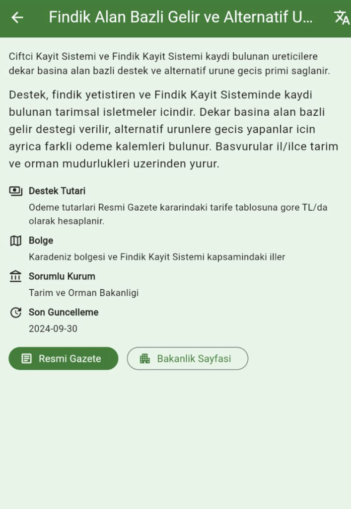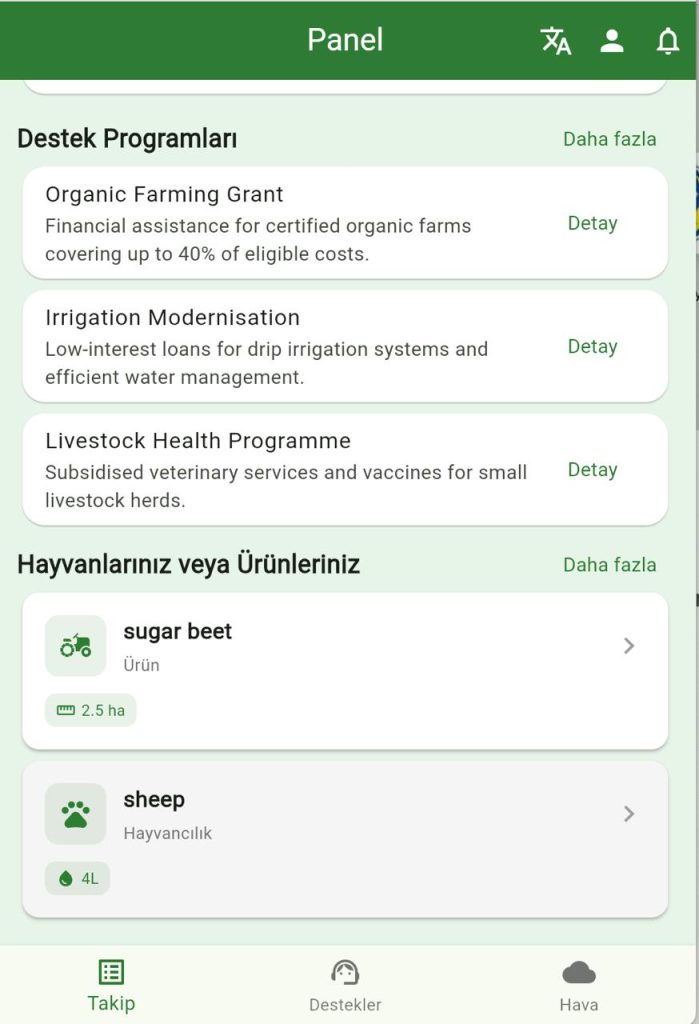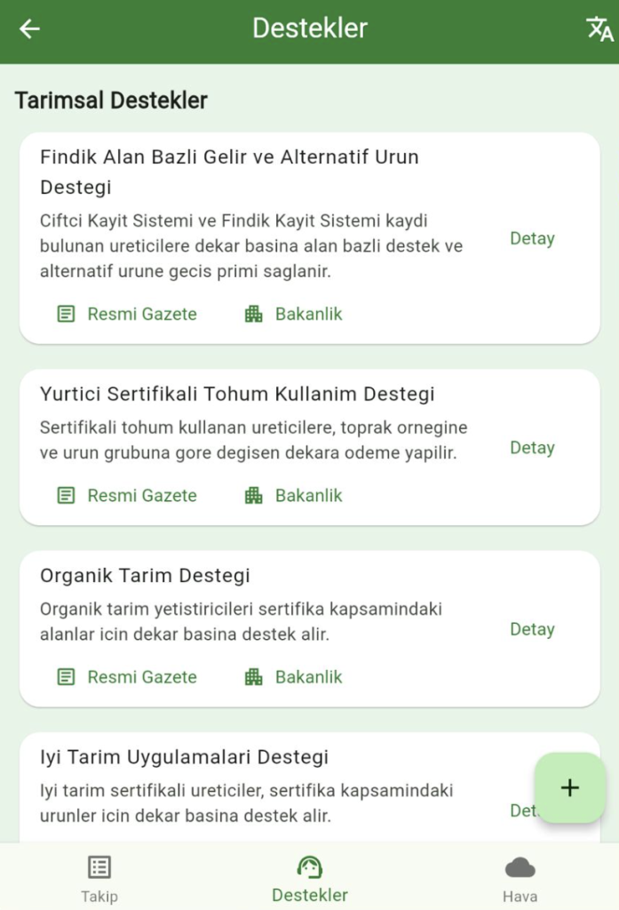 Bu bölümde, tarım ve hayvancılıkla ilgili size özel devlet desteklerini, hibe programlarını ve teşvik fırsatlarını kolayca görüntüleyebilirsiniz.